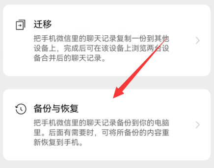 4.然后选择“聊天记录备份和迁移”