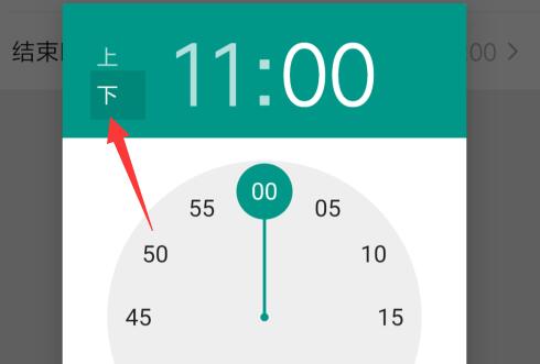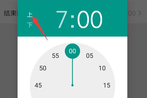 第六步:点击“结束时间”,选择“向上”,选择早上的结束时间。