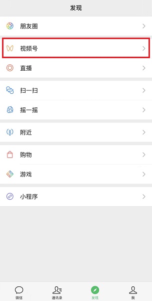 1.打开微信,选择发现目录,选择视频号,点击进入。