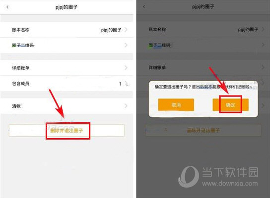 3、点击【删除并退出圈子】,在提示框中点击【确定】。 (如下所示)