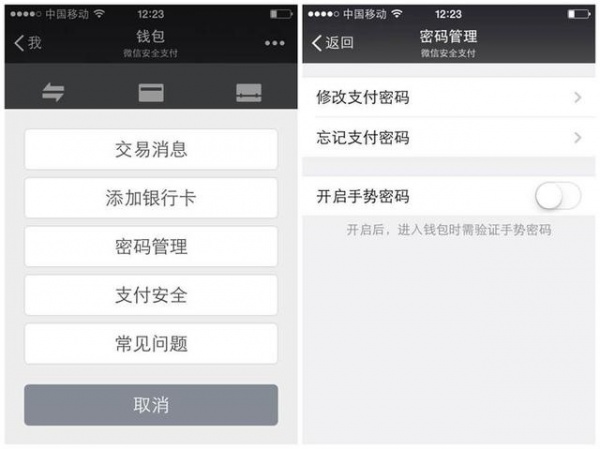 新版本支持用户为钱包设置手势密码。