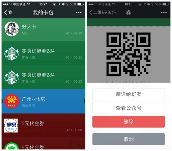 此外,微信还在卡包的礼品卷功能中提供了卡券转让服务,用户可以将自己的优惠券和礼品券转让给好友。微信的卡包更像是一个虚拟钱包。用户可以在卡包中管理自己的银行卡、会员卡和登机牌。