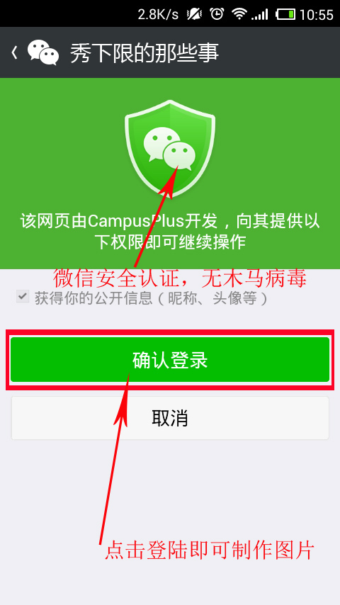 3.登录后的图片是大家在微信上设置的头像。途中的数字可以直接生成,但是自定义的更有意思!