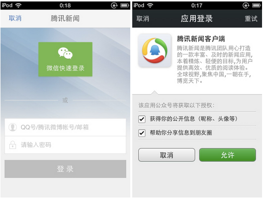 腾讯开始邀请开发者使用微信账号登录功能,用户可以刷屏幕上的二维码,登录并实现支付功能。腾讯新闻客户端、选股、大众点评、美谈将是首批引入微信登录系统的应用。
