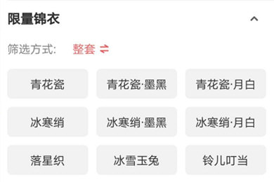 3、最后在设置过滤界面,选择底部的搜索条件为“限量版锦衣”,即可看到所有限量版锦衣。