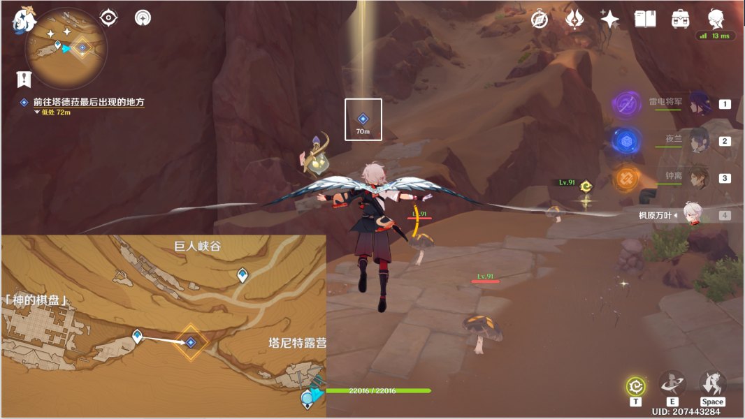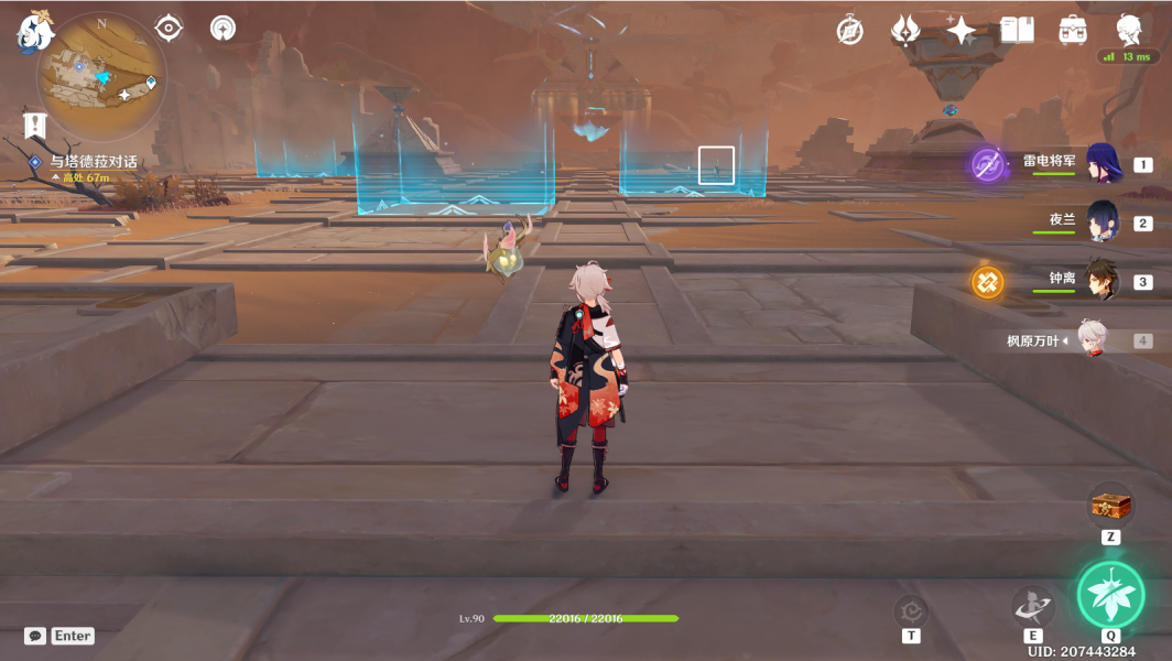 3.传送到上帝棋盘锚点,飞到地图西边,使用四叶封印,前往塔德拉等待的地方。