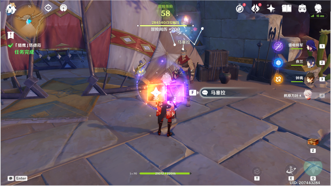 8.结束对话,完成任务【猎鹰塔德拉】。