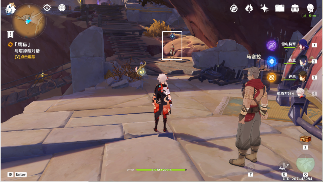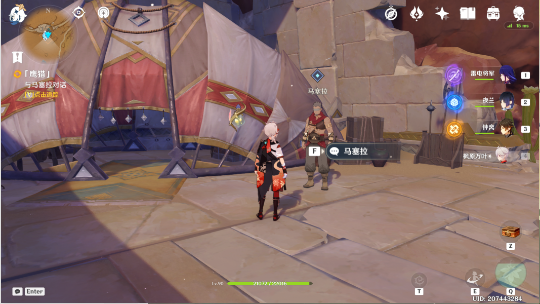 7、将千谷沙神像传送至塔尼特营地,再次与玛塞拉对话。