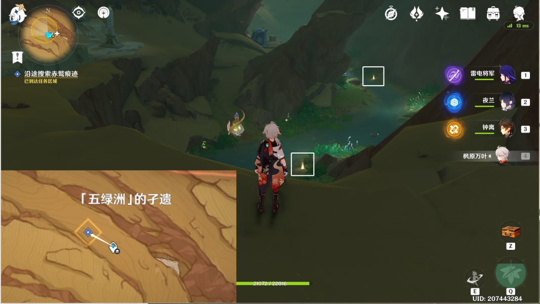 6.飞到地图西北部,使用四叶封印快速搜索发光位置。