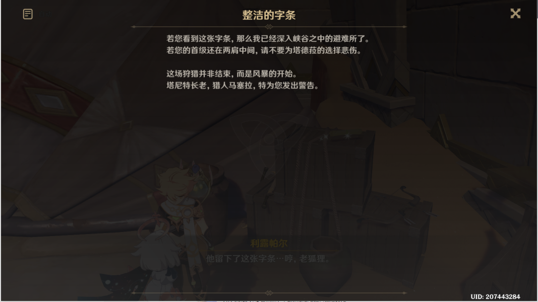 6.传送千河沙神像,前往塔尼特营地,调查木箱。