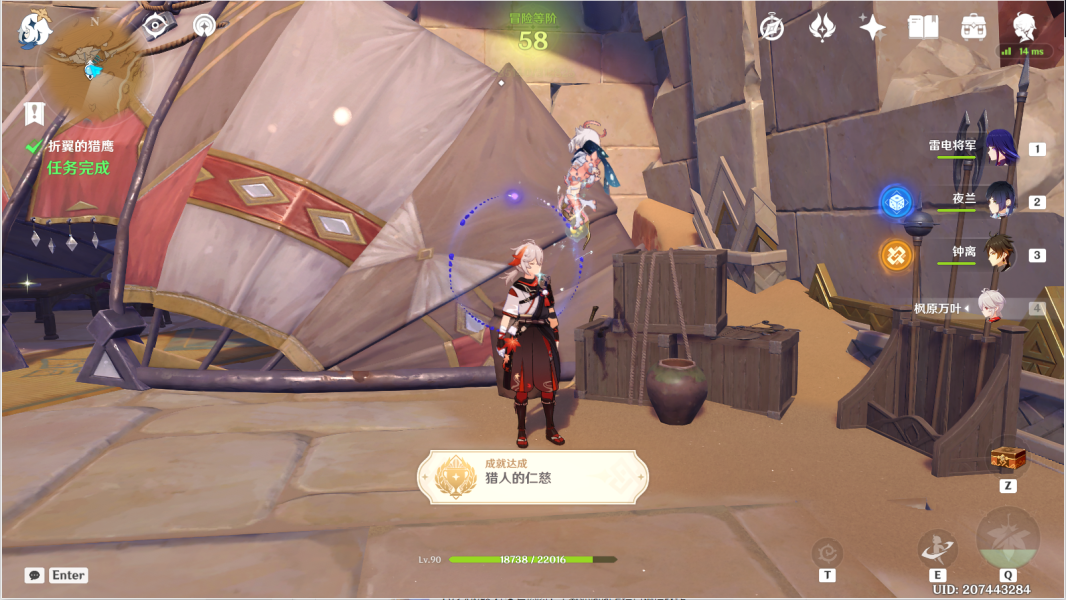8.结束对话,完成任务【断翼猎鹰】,获得成就【猎人的仁慈】。