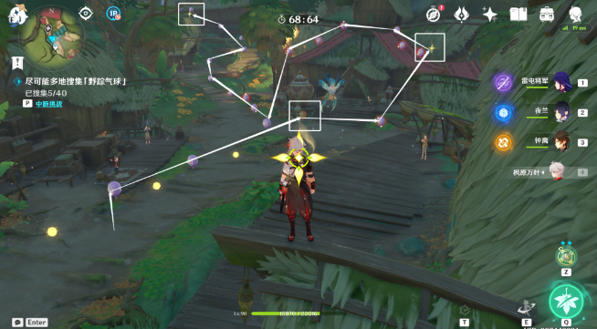 3.使用四叶封印向东向上飞,按照指示,使用道具收集气球,然后返回侧屋顶。