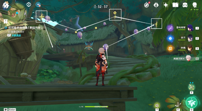 2.向东南方向走,触摸【狂野踪迹气球苏娜】,使用四叶封印,并使用道具收集气球,然后返回【狂野踪迹气球苏娜】,然后前往画面最左边的楼梯。