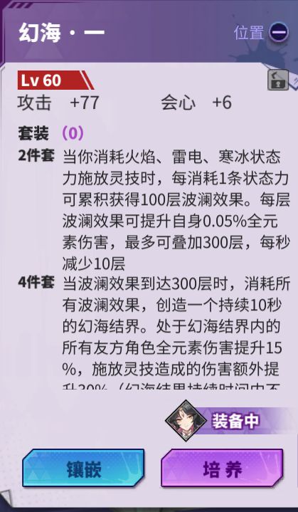 曹玄良拿了黄月英的武魂姬魂主司太尉,加了两个幻海(就是不要换两个临渊)。黄月影一级时有10%的几率增加30%的雷击伤害,二级时有10%的几率增加雷击伤害5%。对于雷属性的角色来说,她就像是一个亲爱的妻子。太尉可以增加雷属性伤害,这是为曹玄良量身定做的。尤其是四件套后,有25%的几率对5个目标进行连锁闪电,使目标的雷属性伤害增加25%。幻海相当于每使用一个技能增加5%的元素伤害,最多可以叠加15%。当堆叠起来时,它会变得更加强大。林渊就比较普通一点,全属性伤害加成8%就可以使用。