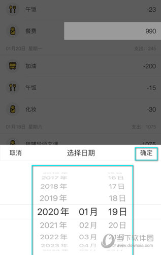 2、然后点击右下角的【今天】图标,可以修改记录的消费时间。
