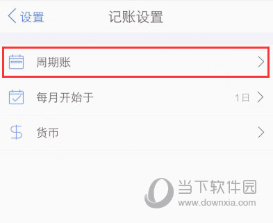 2、然后在“记账设置”功能选项中选择并点击“定期记账”功能。