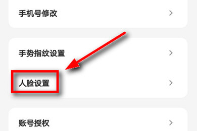 2、然后在“安全中心”功能界面中可以看到“人脸设置”功能选项,点击进入。