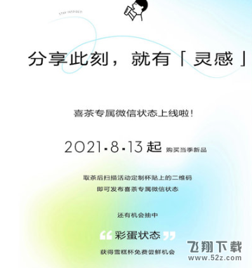 想要领取的朋友只需在喜茶购买当季新品,扫描活动定制杯子上的二维码,即可解锁喜茶专属状态,还有机会赢取菜单。