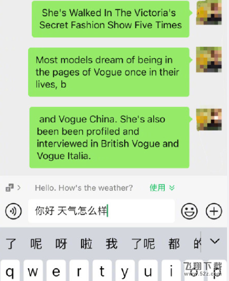 3.打开后,在输入框中输入内容,上面就会出现翻译后的文本。点击“使用”选择发送翻译内容。