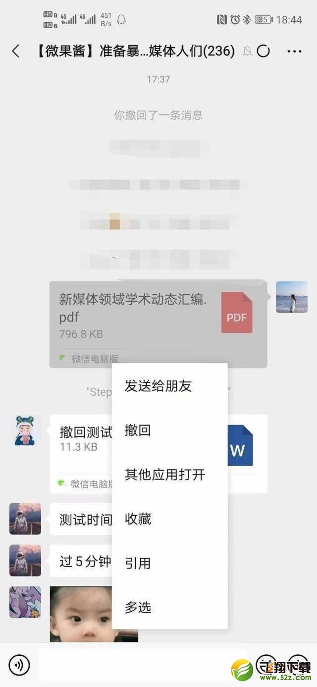 此外,Jam Girl发现微信文件的提取时间可以超过2分钟。如图所示,一小时前发送的文件,超过一小时后仍然可以撤回。