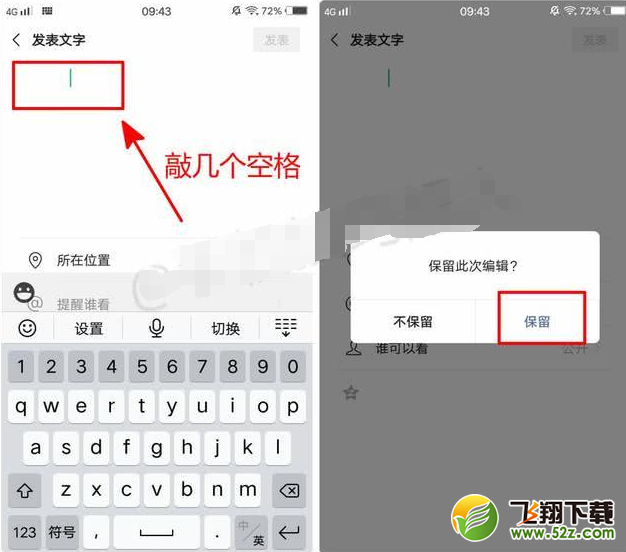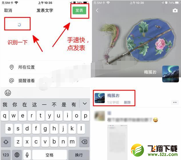 退出后,再次进入文字朋友圈编辑界面,然后快速点击界面中的【发布】图标。这样的话我们发的朋友圈就会一片空白~
