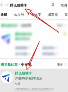 2、在搜索框中搜索腾讯我的车服务,点击下拉小程序即可使用;