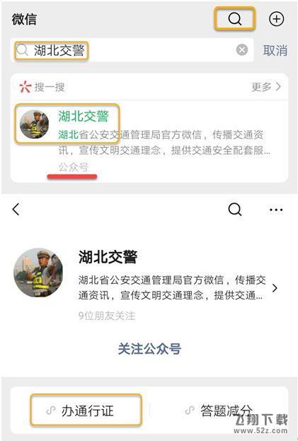 1.打开手机微信,搜索并关注“湖北交警”官方微信。