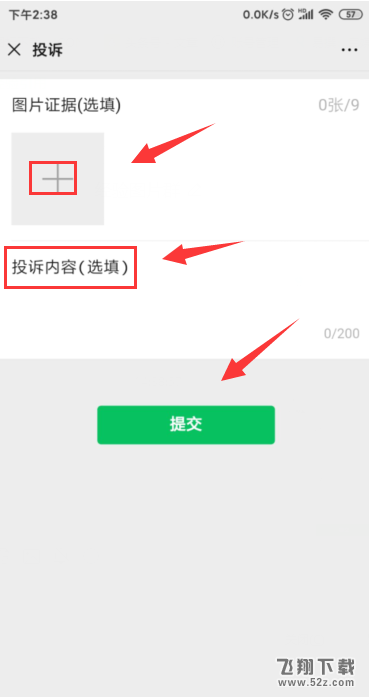 7.然后选择上传照片,输入投诉原因,提交,如图。
