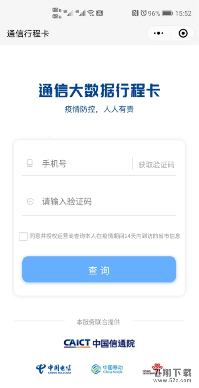 用户只需打开微信小程序“通讯行程卡”,填写手机号码和验证码,即可查询疫情期间14天内该号码去过的省市。
