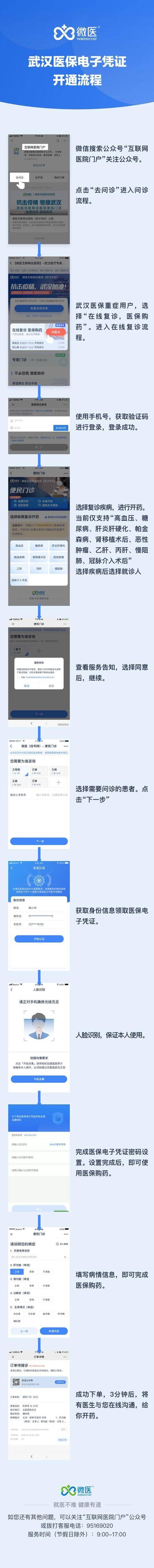 武汉医保用户可登录“互联网医院门户”公众号,选择“去开药”,提交身份信息并完成人脸识别并设置密码,即可完成医保电子凭证领取。