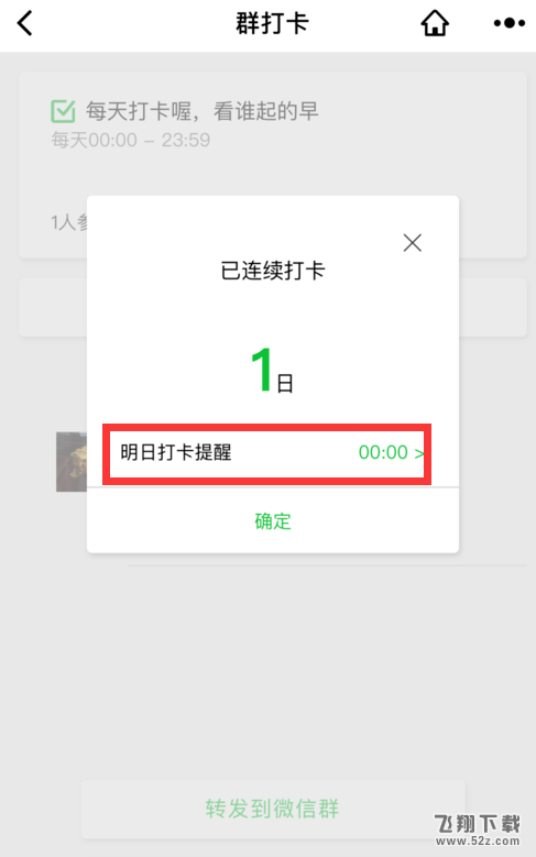 3、签到成功后,我们还可以通过App设置“明天打卡提醒”。设定好时间后,第二天到了时间就会推送消息提醒大家参与签到。
