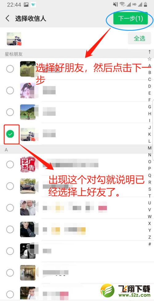 4.然后在界面中选择好友,点击“下一步”