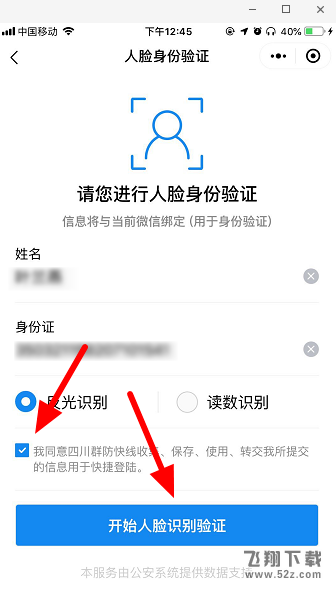 勾选同意并点击“开始人脸识别验证”。
