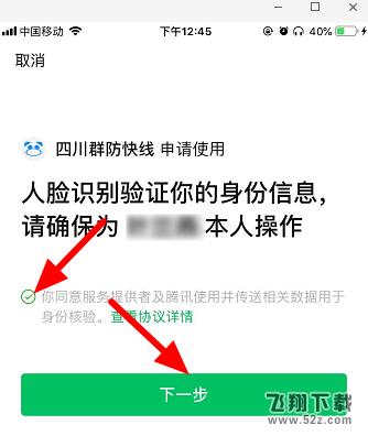勾选同意,点击“下一步”,然后指向手机上的圆圈,系统就会开始自动识别。