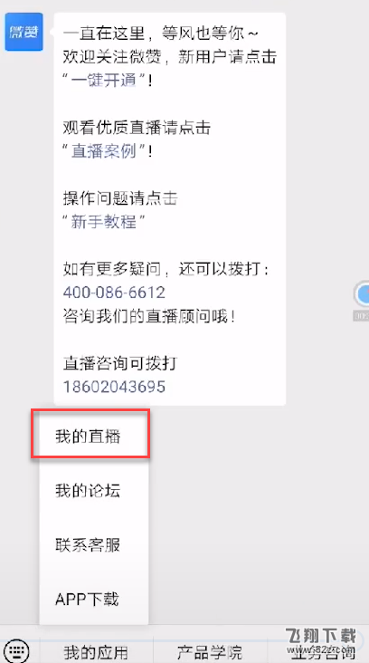 3.选择“我的直播”,进入微信直播激活界面。