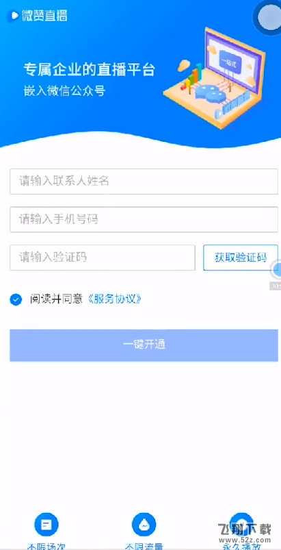4.点击“一键打开直播间”,填写姓名、手机号码、验证码即可激活。