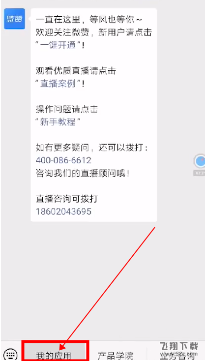 2.关注并进入“微赞”公众号,点击“我的应用”。