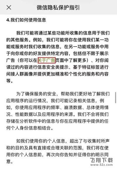 4、进入“我们如何使用信息”页面后,选择关于广告,打开腾讯隐私保护平台。