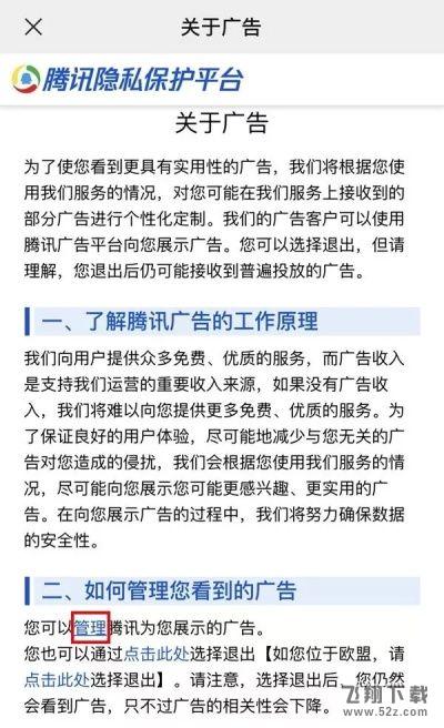 5、在腾讯隐私保护平台中,选择“如何管理您看到的广告”下的“管理”选项,进入腾讯广告管理界面。