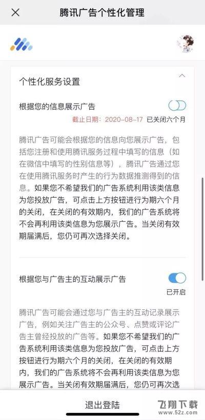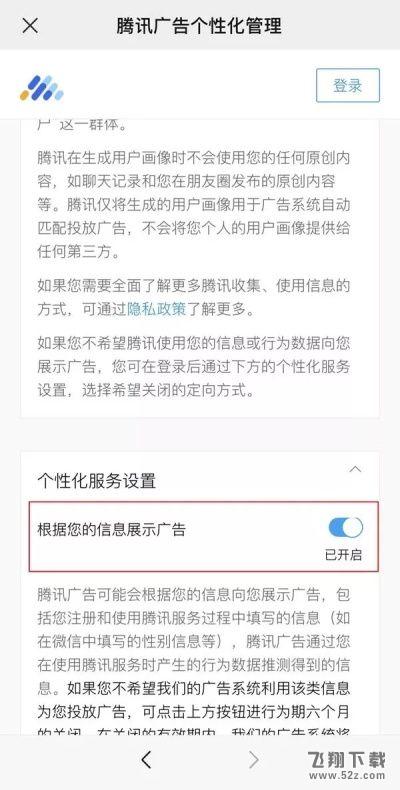 6、在腾讯广告管理界面,用户可以在个性化服务设置中关闭“根据您的信息展示广告”等四项。