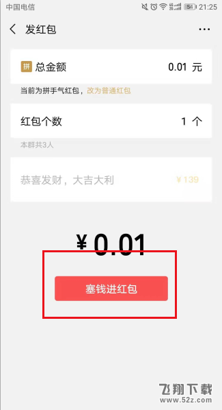 4、我们设置好要发送的金额后,就可以直接将红包发出去了。