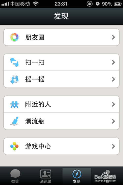 首先,打开我们的微信。我的微信是5.0,点发现,然后点朋友圈。
