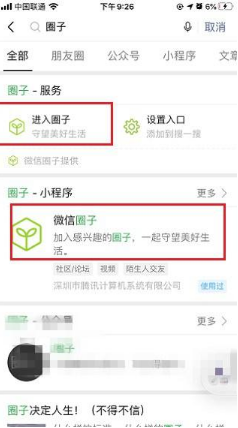 2.在搜一搜页面点击搜索“圈子”,然后点击页面上的微信圈子小程序。