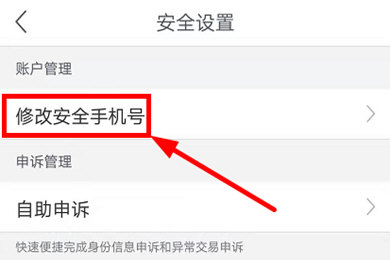 2.然后在安全设置功能界面中选择“修改安全手机号码”。