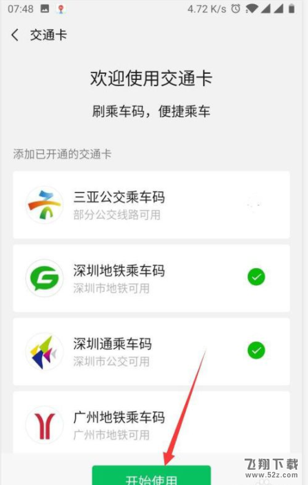 进入公交卡后,我们可以看到当前正在使用的所有公交卡的列表,然后选择您需要选择的公交卡,最后点击开始使用。