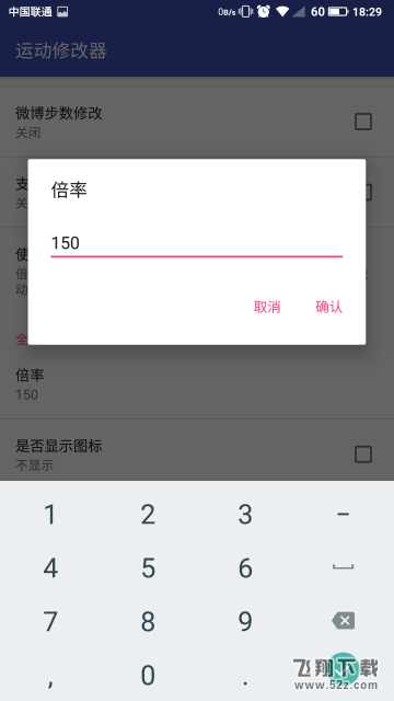 5. 设置放大倍率。小编这里设置的是150次。软件中的步数为锻炼步数x 150。