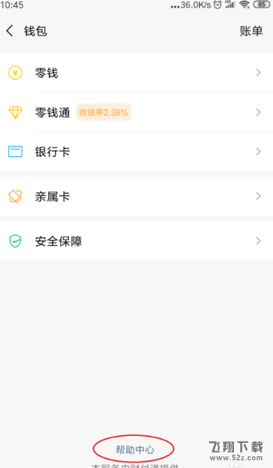 在“钱包”页面底部找到帮助中心。 (字比较小)
