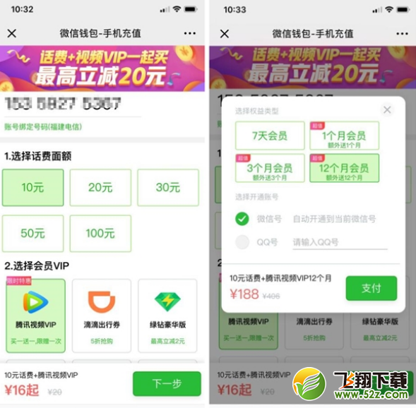 充值188元=10元话费+2年腾讯视频会员