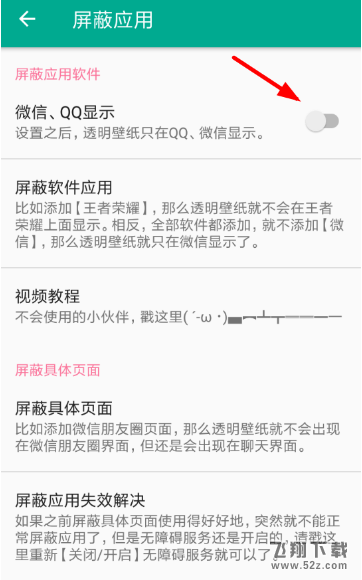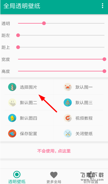 2、选择图片设置透明壁纸后,需要选择右下角的“软件设置”功能,通过屏蔽应用功能,仅在“微信和QQ”中设置透明壁纸。