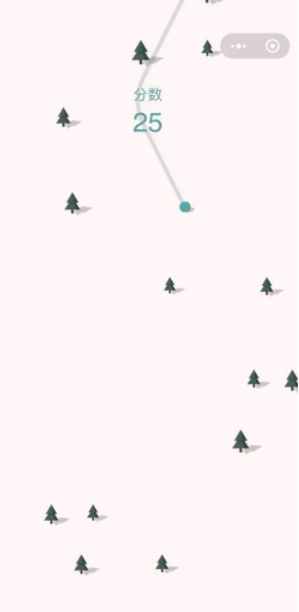 游戏开始时,屏幕上会出现一个雪球。我们要做的就是让雪球在快速落下时避开树木。躲避树木的方法是点击屏幕来改变雪球下落的方向。